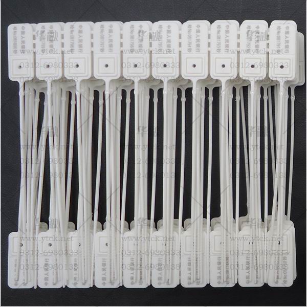 银通财会用品有限公司专业生产银行专用一次性封扣,为款包款箱封箱专用,长度分为18厘米 21厘米 33厘米 35厘米 特殊长度可订做。