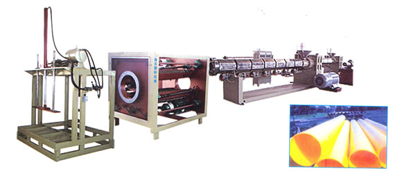 生产线主要用于生产HDPE缠绕式双壁波纹管材,其技术性能被权威专家鉴定为国际先进水平,填补国内空白。所生产的管材产品除具备塑料管材施工方便、施工费用低、能源节省、无渗漏等特点外,还具有米重轻、环刚度高、管材成本低、生产效率高等特点。该生产线工艺设计独特,性能稳定,更换模具即可生产双重壁缠绕管材,实现一机两用。