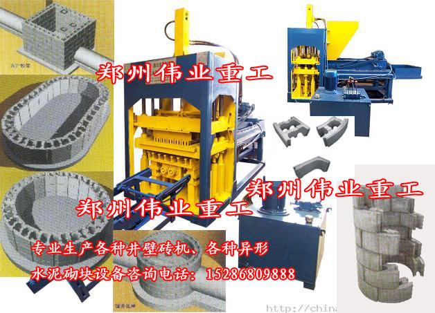 井壁模块设备广泛适用于煤、热、水、电、气等市政地下构筑物的新型砌筑材料。如:排水、储水设施的各类检查井、雨水口、方沟、化粪池及小型构筑物、桥梁翼墙等。井壁砌块模块化:圆形检查井的弧型模块基本尺寸是将井型整体分割,形成单元模块尺寸规格,用几种形式的模块即可满足各类井型的需要,模块已系列化。本机采用振动加压成型工艺,其优点是:制品外观整齐、颗粒均匀、尺寸准确、结构密实、成型效率高、水泥用量少、降低成本、成型后可立即脱模。本生产线,各部位配合紧密。故障率低有效的提高了生产效率。全自动PLC控制更快捷,更稳定,操作简单方便。其优点是:制品外观整齐、颗粒均匀、尺寸准确、结构实、成型效率高、水泥用量少、降低成本、成型后可立即脱模。独特的外置式振动器调节装置及进口变频系统的加装,使振幅(激振力)的调节十分的方便,从而可获得各种轻、重物料的最佳的成型效果。出坯系统采用链条输送,使砌块坯体传出时绝对的平稳、无内伤,从而能满足各种物料坯体对系统的不同需求,保证了出坯100%的合格率。在诸多的工况下,设备技术状况可以调节到最佳状态。井壁墙体模块砖机造型美观大方,使用可靠,维修方便。可实现联动操作,极大减轻了操作人员的劳动强度。窨井壁砖设备 窨井砖机 盲井壁砖机械 盲井砖机设备