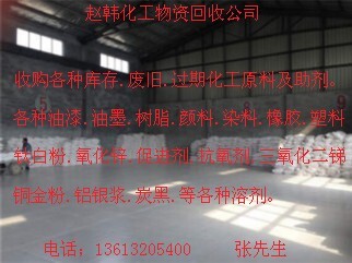 本公司常年回收各种库存.废旧.过期化工产品 如 染料 颜料 色粉 油漆 树脂(固体液体) 香精 涂料 固化剂 钛白粉 铝银浆 乳化剂 表面活性剂 热熔胶 硅油 油墨 溶剂 橡胶 天然胶 丁苯胶等 聚醚 MDI UV系列 农药 各种石蜡 聚乙烯蜡 液体蜡 顺酐 苯酐 PVC 动植物油 色母 沥青 二氧化硅 锌粉 金粉 银粉 电镀金属助剂 皮革助剂 塑料助剂 塑胶助剂 橡胶助剂 印染助剂 造纸助剂 石油助剂 水处理剂 各种进口助剂 进口化工原料 稀土 钴 镍 银 氯化亚锡 硫酸亚锡 硫酸铜 高锰酸钾等化工中间体 化工试剂 食品添加剂 瓜尔胶 海藻酸钠等 欢迎来电咨询 有货请联系 提供信息的公司和个人现金酬谢 长期合作。电话;13613205400 张先生 24小时为你服务