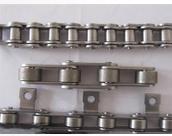 5.橡胶链:此类链条是在基于A、B系列不锈钢链条的外链节上加U形附板,在附板上粘上橡胶(如天然橡胶NR、硅树脂橡胶SI等)可增加磨损能力,降低噪音,增加防震能力。用于输送。