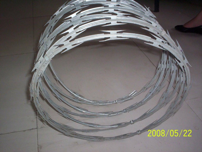 整体防腐年限应不低于10年。刀片刺网由锐利尖角不锈钢制作,高张力钢丝做芯线组合而成的阻绝器材。